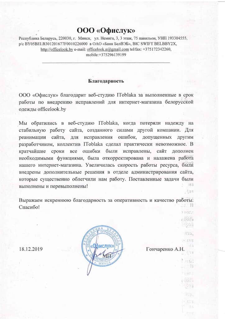 Мы благодарны нашим клиентам за оказанное доверие и положительные отзывы о сотрудничестве с нашей компанией. Просто свяжитесь с нами!