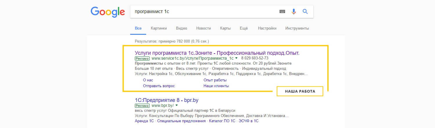 - Создали рекламные кампании, подобрали ключевые слова, сформировали объявления.