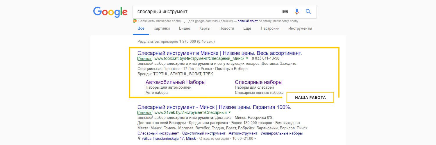 - Клиент получил четкое понимание своего позиционирования на рынке и дальнейших путей оптимизации рекламы.