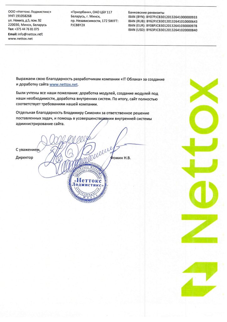 Выражаем свою благодарность разработчикам компании «ITOBLAKA» за создание и доработку сайта www.nettox.net.